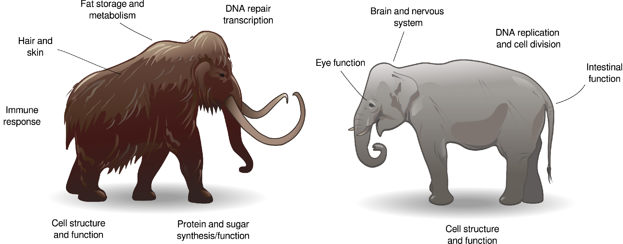 If mammoths were to thrive in the frigid mammoth steppe, the mosaic of grasses, herbs, and tundra that stretched from Spain to Alaska, they needed more than size and tusks. They needed molecular innovations.
