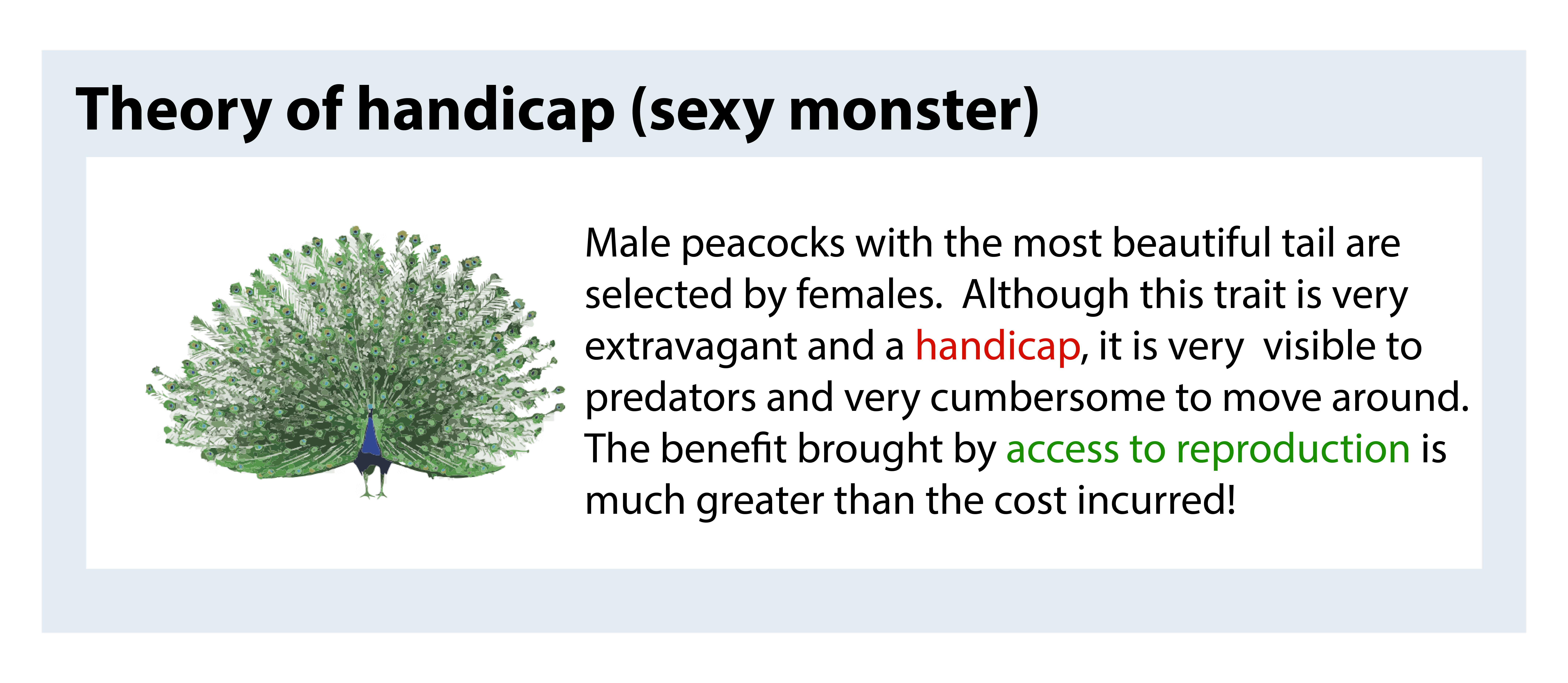 But were Darwin and Wallace wrong? What’s the point of favouring such disabling characteristics that increase the probability of dying? Well, the answer can be summed up in one simple phrase: to gain access to reproduction!